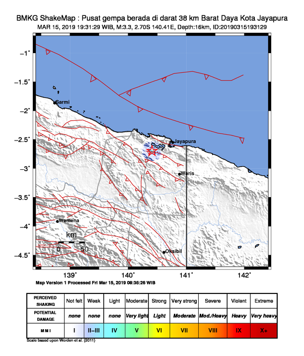 GEMPABUMI TEKTONIK M 3,3 MENGGUNCANG WILAYAH KABUPATEN JAYAPURA, TIDAK BERPOTENSI TSUNAMI